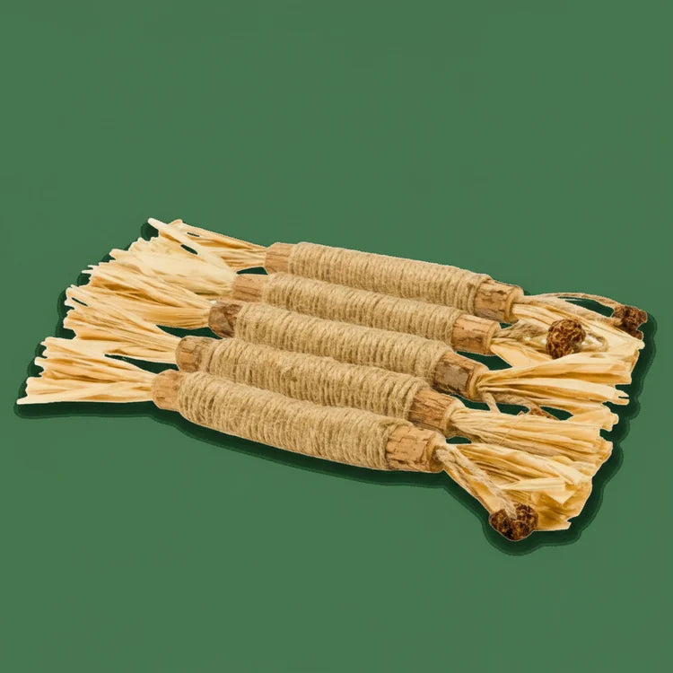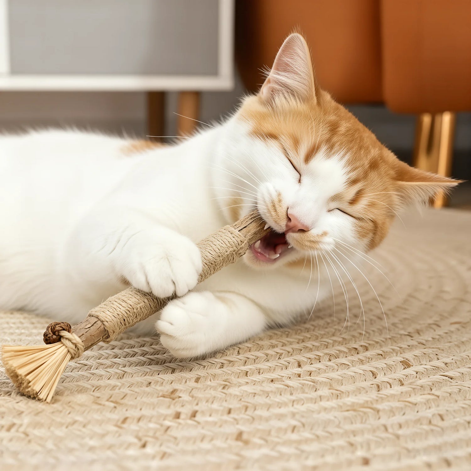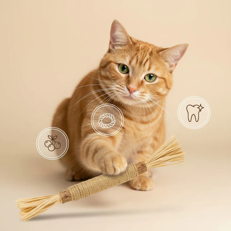 Le fruit de galle apporte une saveur naturelle que les chats adorent mâcher. Associé au bois de silvervine et à la corde de chanvre, il encourage une mastication plus longue, ce qui aide à nettoyer les dents et à garder la bouche plus fraîche, tout en offrant un moment de jeu sain et naturel.
