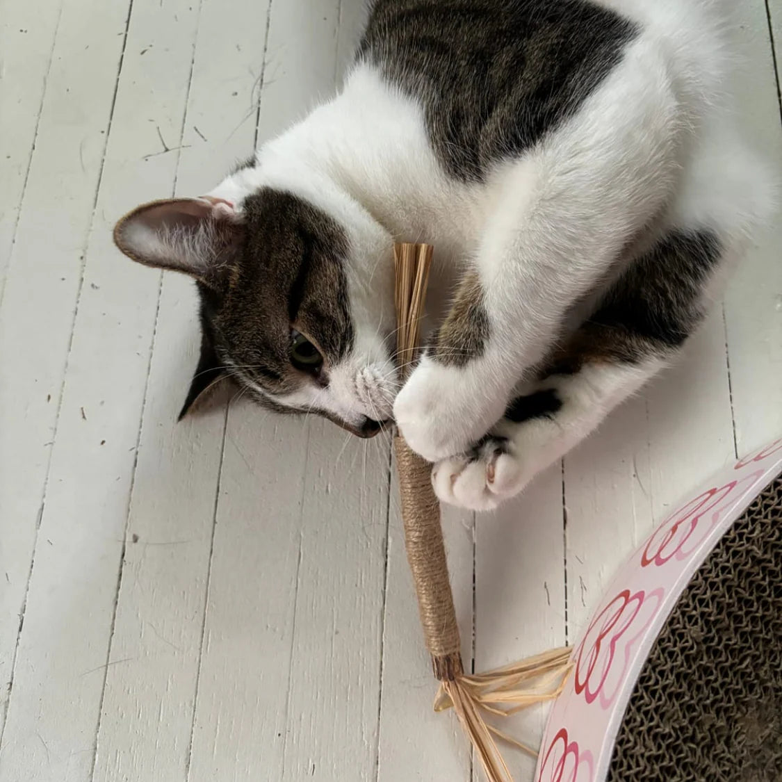 Le raphia séché ajoute une texture et un léger bruit de froissement qui stimulent l’instinct de jeu du chat.
