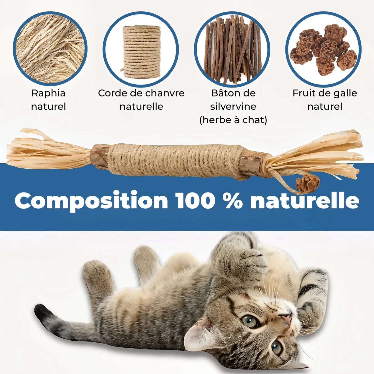 Un bâtonnet à mâcher qui canalise l’énergie de votre chat, l’aide à se détendre après la journée et à rester occupé de façon saine.